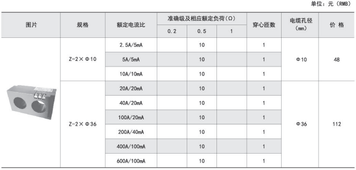 | 規(guī)格 | 額定電流比 | 準(zhǔn)確級(jí)及相應(yīng)額定負(fù)荷(VA) | 電纜孔徑 | 安裝方式 | ||