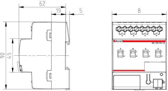 | 產品型號 | 回路數 | 模塊寬度(B)mm | 單回路額定容量 |