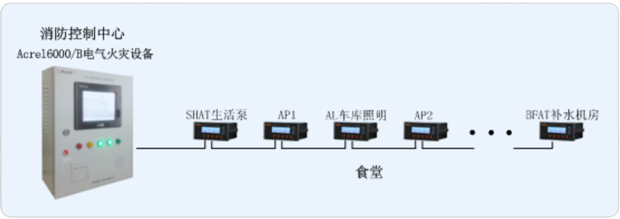 新食堂為地上三層、地下一層,占地面積約為2100平方米,地上建筑面積約為6300平方米。我司承接其電氣火災(zāi)系統(tǒng)的搭建,對安裝于食堂樓層配電箱進(jìn)線處的ARCM200系列剩余電流火災(zāi)探測器設(shè)計一套Acrel-6000/B電氣火災(zāi)系統(tǒng),由此來實時監(jiān)測樓層內(nèi)重要回路的漏電流,以確保變電所配電系統(tǒng)的電氣安全。