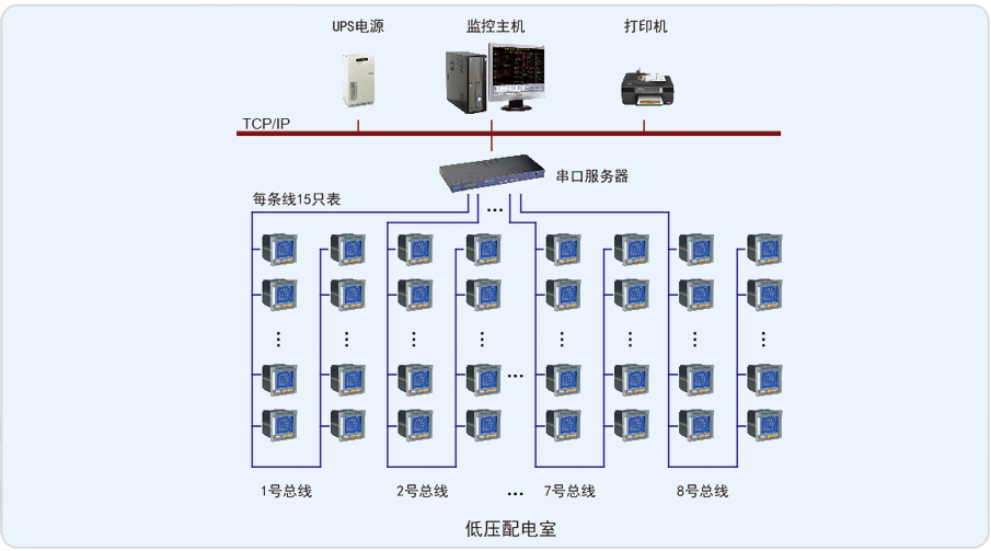 淄博歐木特種紙業有限公司四期電力監控系統針對淄博歐木特種紙業有限公司內四期低壓配電室開關柜內安裝的約120只安科瑞智能電力儀表,監控室位于配電室內。為滿足配電室統一監控的要求,配電室現場安裝安科瑞公司網絡電力儀表通過屏蔽雙絞線手拉手相連至串口服務器,串口服務器通過五類線接入后臺主機,進行數據傳輸。