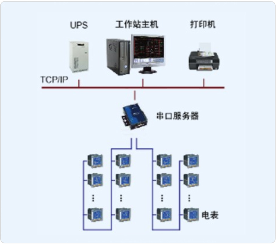 本次項目監(jiān)控范圍煤田地質(zhì)局濟南綜合服務(wù)中心配電室,通過安裝安科瑞PZ系列多功能儀表,以滿足他們電能計量的需求。安科瑞電氣股份有限公司于2015年為其配置一套Acrel-2000電力監(jiān)控系統(tǒng),現(xiàn)場控制層設(shè)備通過RS485總線方式,采用屏蔽雙絞線接入通訊管理機,通訊管理機把采集到的數(shù)據(jù)轉(zhuǎn)換成以太網(wǎng)后傳送至監(jiān)控層網(wǎng)絡(luò)交換機。監(jiān)控層網(wǎng)絡(luò)交換機是整個系統(tǒng)數(shù)據(jù)的大動脈。監(jiān)控計算機從以太網(wǎng)讀取現(xiàn)場控制層設(shè)備的數(shù)據(jù)并實時顯示在人機界面,并存入數(shù)據(jù)庫供計算和報表調(diào)用。通過組建系統(tǒng)網(wǎng)絡(luò),實時監(jiān)測變電所內(nèi)各個回路的電流、電壓、功率、開關(guān)狀態(tài)等電參量,由此達到變電所少人值守或無人值守的智能化管理。