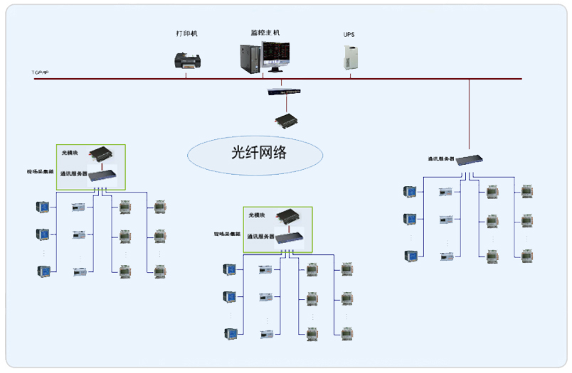 系統(tǒng)采用Acrel-3000型電能管理系統(tǒng),整個系統(tǒng)采用網(wǎng)絡分布式結構,監(jiān)控主機位于主樓監(jiān)控中心,其他兩棟輔樓采用采集箱進行數(shù)據(jù)的采集,所有配電回路均配備安科瑞電力儀表PZ系列、DTSY1352和DDSY1352系列。該項目實現(xiàn)了歐蓓沙中華美食城的配電管理及。所有監(jiān)控設備均通過屏蔽雙絞線至各自采集箱的通訊采集器,再通過光電轉換器經過光纖將數(shù)據(jù)傳輸至監(jiān)控中心,從而實現(xiàn)遠程監(jiān)控和預付費管理。