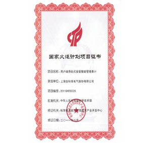 國家火炬計劃項目證書