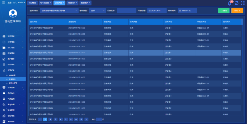 支持多種不同的報警類型,為保證平臺運(yùn)行,提供儀表與網(wǎng)關(guān)的故障報警提醒,提供多種能耗預(yù)警模型供用戶選擇與配置。